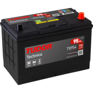 SKU TB954178,28 €Añadir al carritoDiseñada para el arranque de motores diésel y gasolina de alta cilindrada. batería tudor TB954 12v 95ah 720en derecha. dimensiones aproximadas 306x173x222. tapa doble termo sellada para mayor seguridad. filtro anti llamas para evitar deflagraciones. placas de metal expandido 3dx con alta resistencia a la corrosión. aditivos de carbono para reducir una posible sulfatación de las placas. salida centralizada de gases.