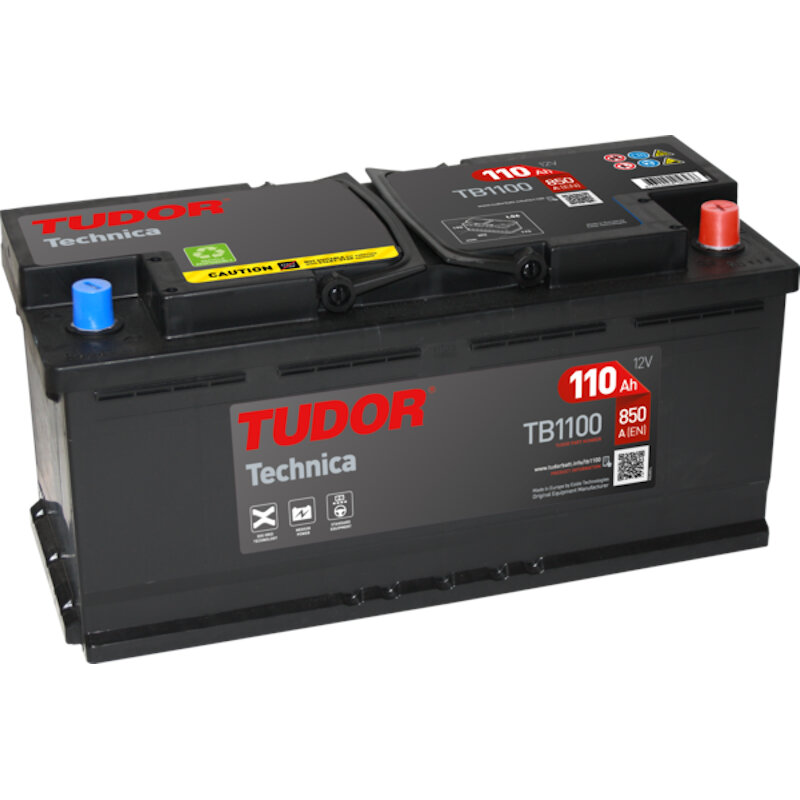 Diseñada para el arranque de motores diésel y gasolina de alta cilindrada. batería tudor TB1100 12v 110ah 850en derecha. dimensiones aproximadas 392x175x190. tapa doble termo sellada para mayor seguridad. filtro anti llamas para evitar deflagraciones. placas de metal expandido 3dx con alta resistencia a la corrosión. aditivos de carbono para reducir una posible sulfatación de las placas. salida centralizada de gases.