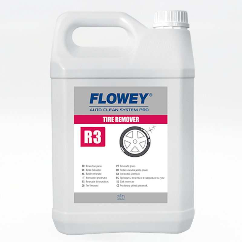 R3 FLOWEY TIRE REMOVER es un renovador específicamente diseñado para ennegrecer el flanco de los neumáticos. Este producto devuelve a los neumáticos su aspecto negro y satinado original. TIRE REMOVER es de fácil aplicación, no se agrieta por su uso y se adapta a la perfección a la textura del neumático.